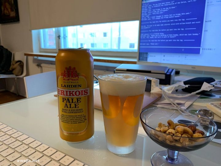 まもなく午後8時なんですが、明る過ぎて夕食作る雰囲気じゃないので、とりあえずナッツでビール。